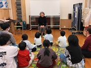 小学校2・3年生が参加し、おはなし「アナンシと五」や『ずいとんさん』などの絵本、昔話の紙芝居、絵本『目だまし手品』からの視覚トリックなどを楽しみました。